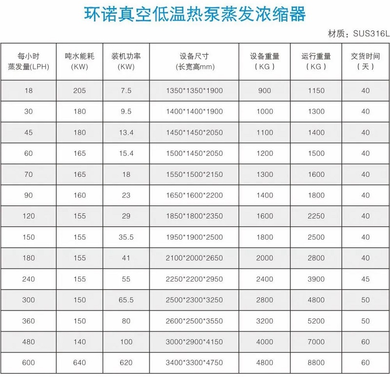 2、充分利用熱泵的空氣能,相較于傳統蒸汽或者電加熱蒸發技術,熱泵蒸發技術在能耗上大大降低;