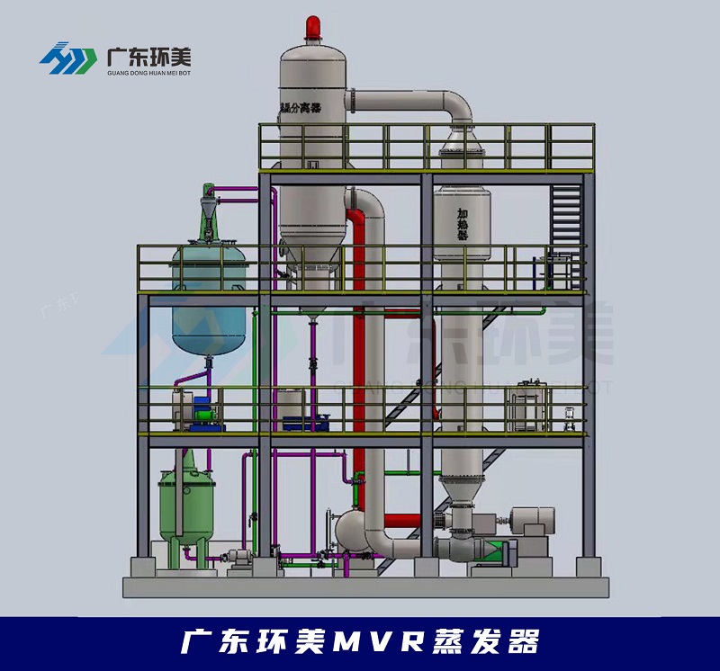 廣東環美MVR蒸發器100%循環利用二次蒸汽的潛熱,大大減少了能源消耗,運行成本低;取消了循環冷卻水系統供應系統;結構緊湊,占地面積小;特別適合于小空間建設;自動化程度高,完全采用自動控制。已成功應用于危廢行業、鋰電池行業、化工行業、生物發酵行業、制藥行業等工業污水零排放領域。