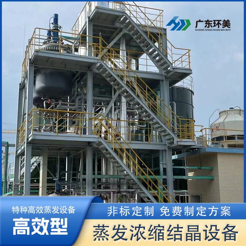 一效、二效、三效、四效、五效加熱器、一效、二效、三效、四效、五效分離器(汽液分離、結晶器)、預熱器(末效蒸汽、盤管預熱或列管預熱)、冷凝器、冷凝水儲罐、真空泵、循環泵(過料)、強制循環泵、冷凝水泵、結晶(稠厚)釜、旋液裝置、母液罐、離心機、電氣儀表控制及閥門、管路等組成。
